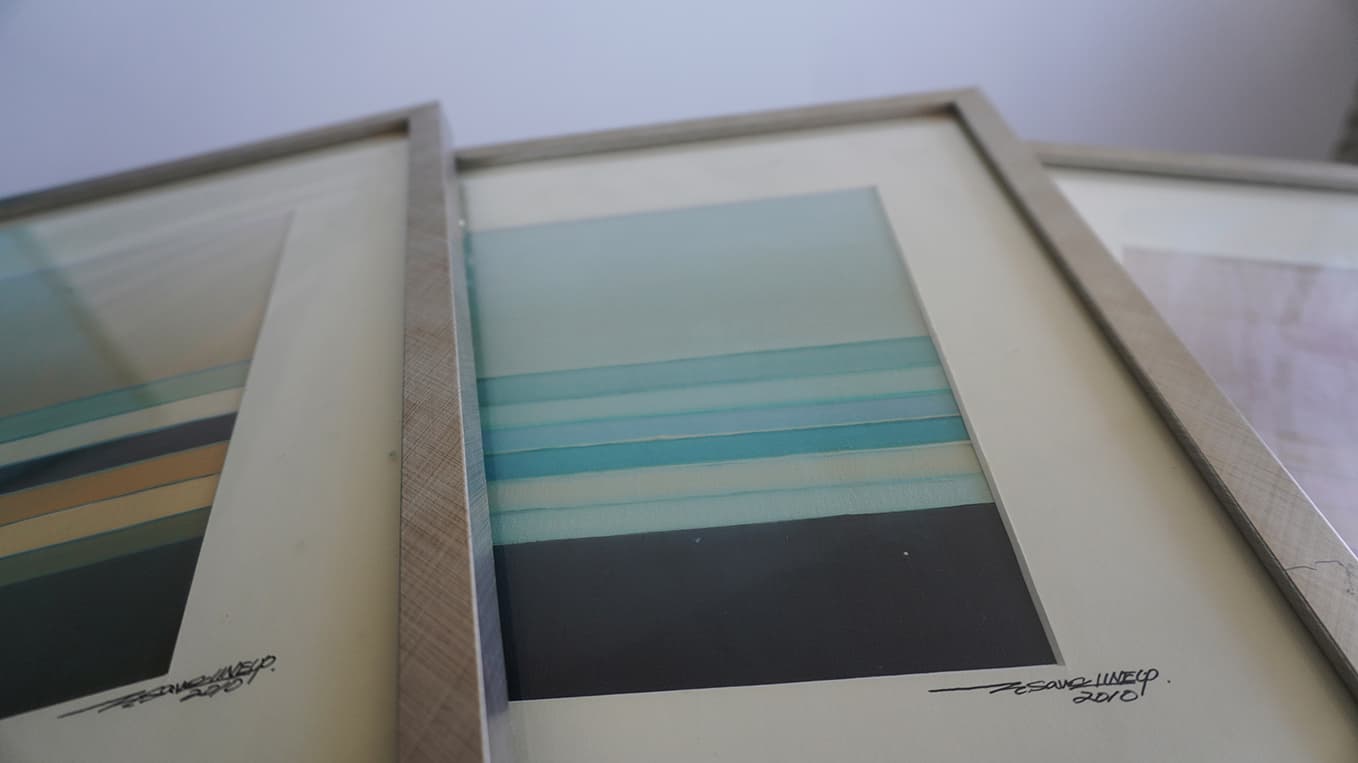 記憶の中にある、「あの海」「この海」、表現してほしい「あんな海」「こんな海」、大切な人に贈りたい「あの日の海」など。お一人おひとりにとっての大切な「海」をヒアリングすることからスタートします。澤氏と実際に対話し、心に描いているイメージを、その背景にあるストーリーと共にお聞きし、用途やディスプレイ環境などの意見交換も行い、その上でアート化する作風などをお選びいただきます。上の写真のケースは、依頼主様がお住まいのリビングの白壁の四方に、澤氏の「LINE UP」アートを、依頼主様が想起する「サンライズ」「デイタイム」「サンセット」の色味で飾りたいというオーダーのもと、3枚同時に制作、納品した例となります。水平線一つとっても、一人ひとりに一つひとつのイメージがあり、それをアートというカタチにする。その方にとっての、世界に一つのTHE SECRET BEACHを制作いたします。