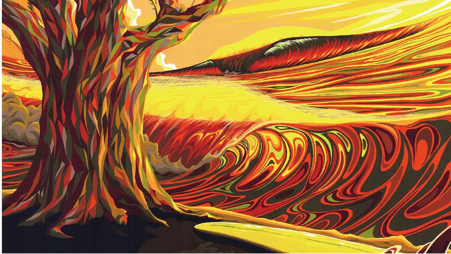 見る者を圧倒するグラフィカルでラディカルな構図は、葛飾北斎にも影響を与えたとされる江戸期の彫刻師「波の伊八」の世界観がベースの一つになっているといい、その誰も真似できないアートワークで、世界的な評価も得ている「筒井一郎」氏。2004年のASP VANSトリプルクラウンのオフィシャルポスターに採用された経験を持つほか、国内JPSAのMURASAKI PROにおいては毎年のように大会ビジュアルを提供。サーフメディアへの露出も多い筒井氏との深いネットワークを持つTHE SECRET BEACHでは、氏の協力を得て、サーファーなら誰もが「そんな波にテイクオフしてみたい」と夢に描いたことがあるであろう“ドリームチューブ”を氏の筆でアートとして描き上げるオーダープログラムをご用意しています。筒井氏本人のイマジネーションを刺激するべく対話からスタートし、イメージがそそり立つ“チューブオーダー”。個人の方から、氏のアートをディスプレイしてみたい法人様まで。詳しくはお問い合わせください。
