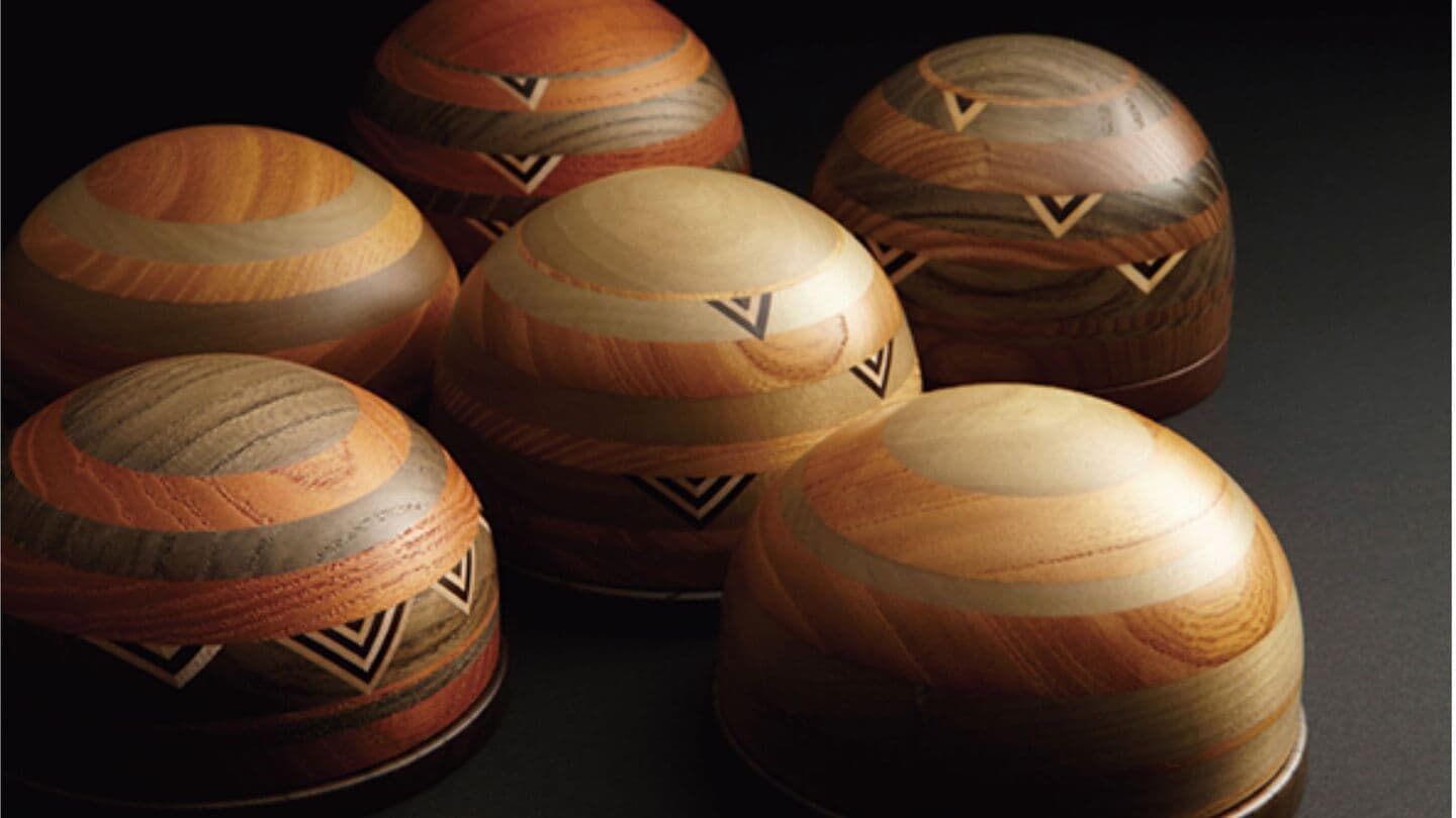 小田原・箱根をベースに活躍する若き寄木職人「篠田英治」氏とTHE SECRET BEACHとのコラボレーション企画として制作した寄木ワックスケース「MORI TO UMI」。「朴(ホオ)」「サクラ」「ミズキ」「タモ」など、それぞれが表情の異なる、森の恵みを寄木として組み上げ、そこに「縞」「市松」といった日本の伝統文様ではない「寄せる波」を想起させる文様を描き出し、0.1mmの精度で木工轆轤(ろくろ)を操る熟練の挽師が曲面を削り出し、絶妙な「合わせ」を生み出す。丸形状のワックスを格納し、使用し続けると木の色に表情が生まれ、木が“呼吸”していることを実感できます。プラスチックの利便性よりも、木の温もりや味わい深さ。森の風を海へのオフショアに変え、いつものサーフィンをより豊かに、心の波風を静め、目の前の時間をメロウに整えてくれます。